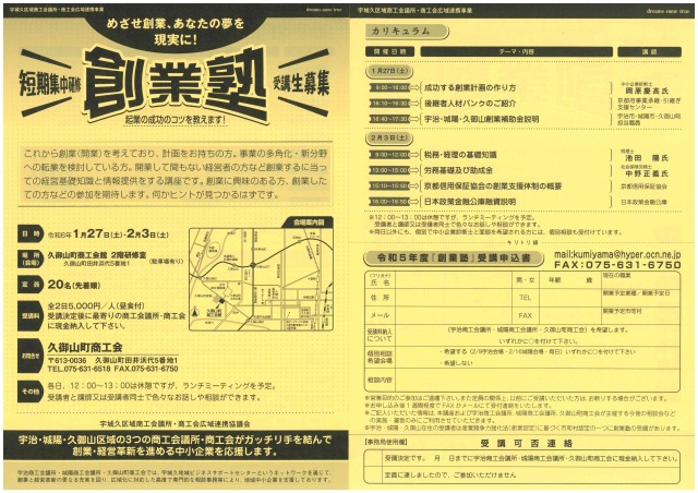 【創業塾の受付は1月6日(月)から開始します】