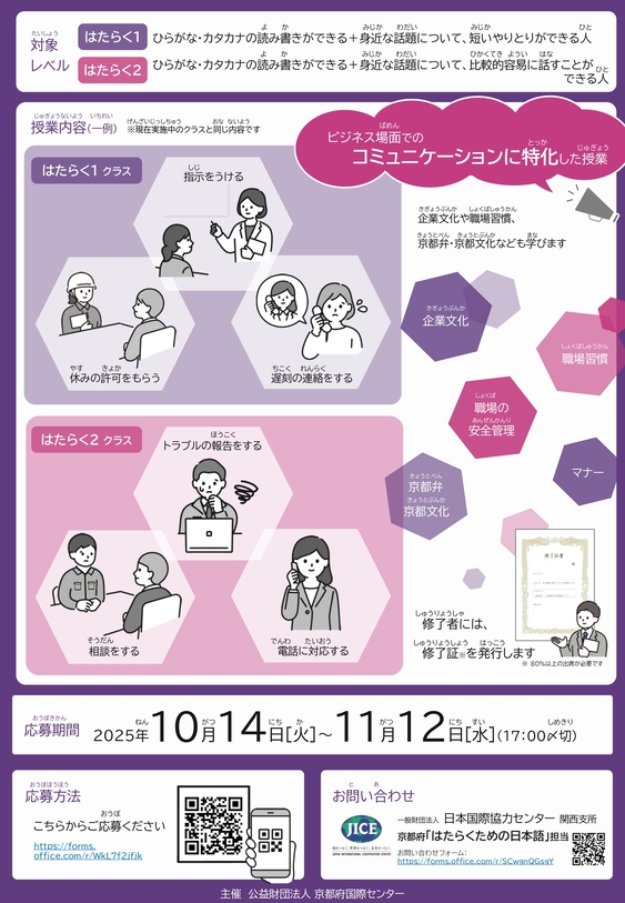 〒615-0042 京都市右京区西院東中水町17 京都府中小企業会館4F